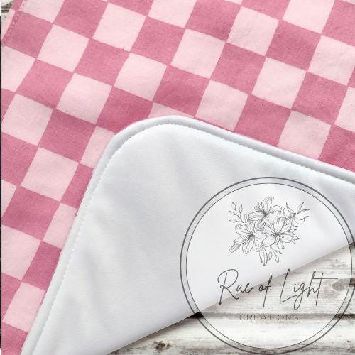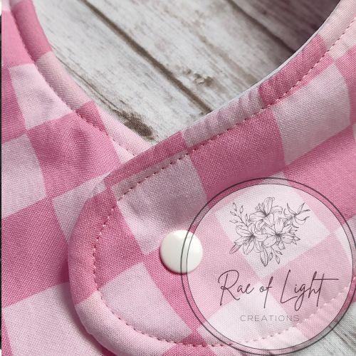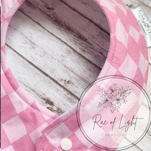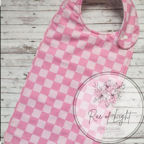 LONG Pink Checker Special Needs Bib for big kids, youth and teens
